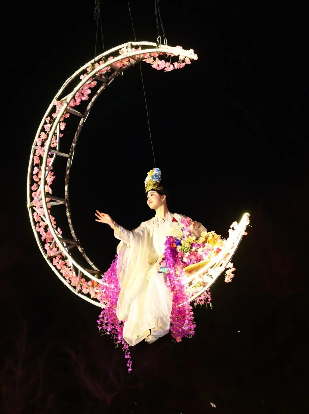 万盏彩灯次第点亮,红的、金的、暖黄的灯光交织成片
