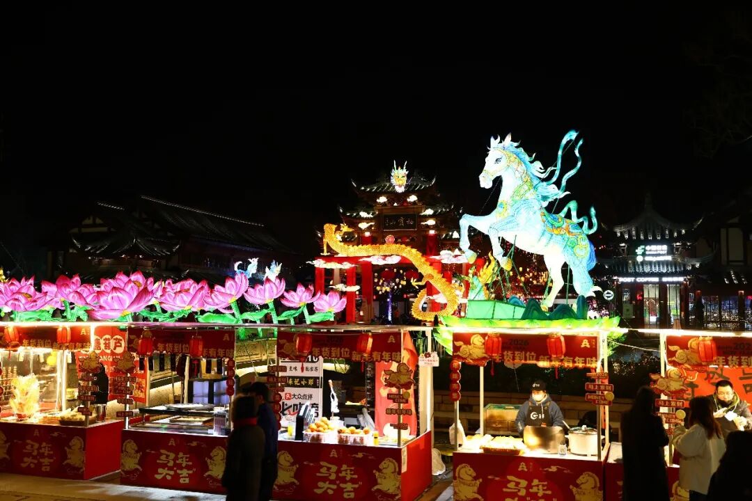 传统年味与浪漫夜景撞了个满怀
