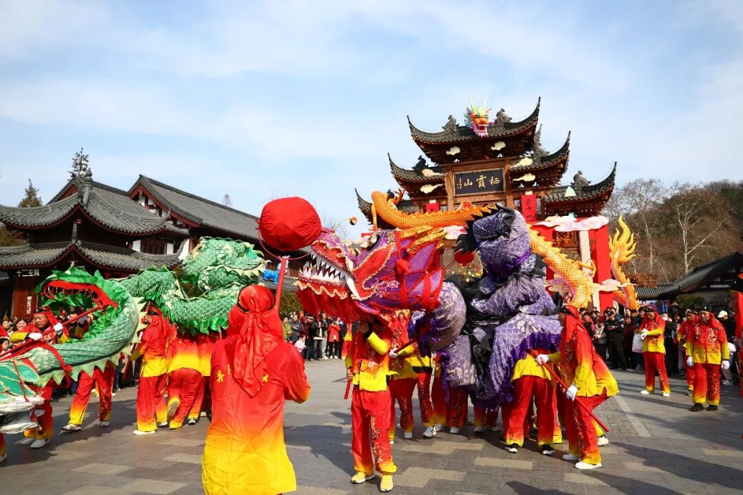 非遗丹阳舞龙一登场,便点燃了整座栖霞山的热情