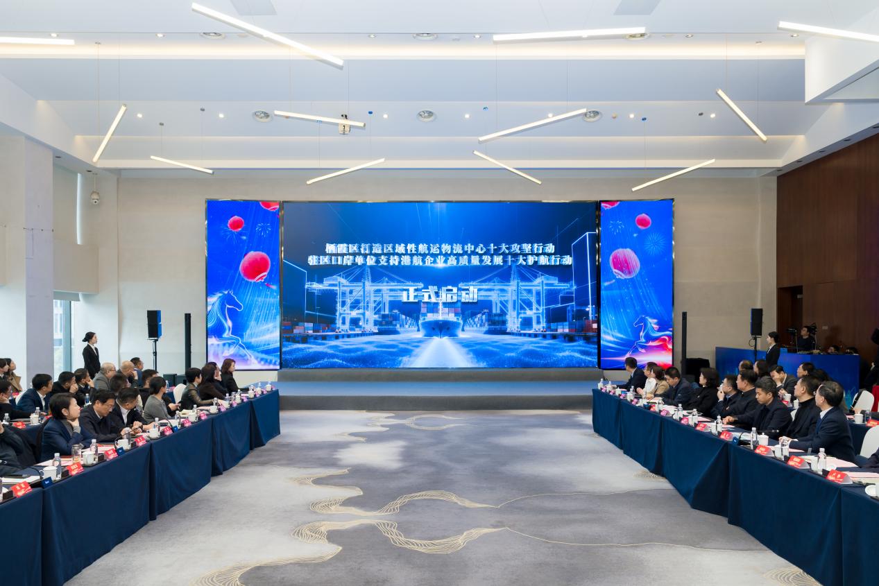 政策引领发展,服务护航前行。会上,栖霞区联合驻区口岸单位重磅发布两项重要行动方案。《栖霞区打造区域性航运物流中心十大攻坚行动》聚焦枢纽能级跃升、临港产业升级、航运生态赋能等重点领域,明确推动港产城融合发展的“路线图”与“任务书”。《驻区口岸单位支持港航企业高质量发展十大护航行动》由金陵海关、新生圩海关、南京海事局、南京港边检站、长航公安南京分局、南京水上公安局、长江南京航道局、长江引航中心、长江南京通信管理局、水文下游局等10家驻区口岸单位联合发布,围绕港口能效升级、数据融合畅通、跨区协同联动等方面,推出一系列便企利企的务实举措。