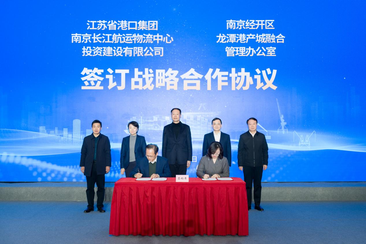 此外,南京市栖霞区人民政府与江苏海事职业技术学院签订战略合作协议,在港航人才培育、科研成果转化、产业智库建设等方面提供坚实支撑,为区域性航运物流中心建设注入“智慧引擎”。龙潭港产城管办与南京长江航运物流中心投资建设有限公司签订战略合作协议。作为省港口集团服务国家战略的关键落子,长航投将与龙潭港产城管办聚焦龙潭打造国家级航运物流枢纽目标,强化业务协同合作,构建一体化发展新格局,实现资源共享、优势互补。