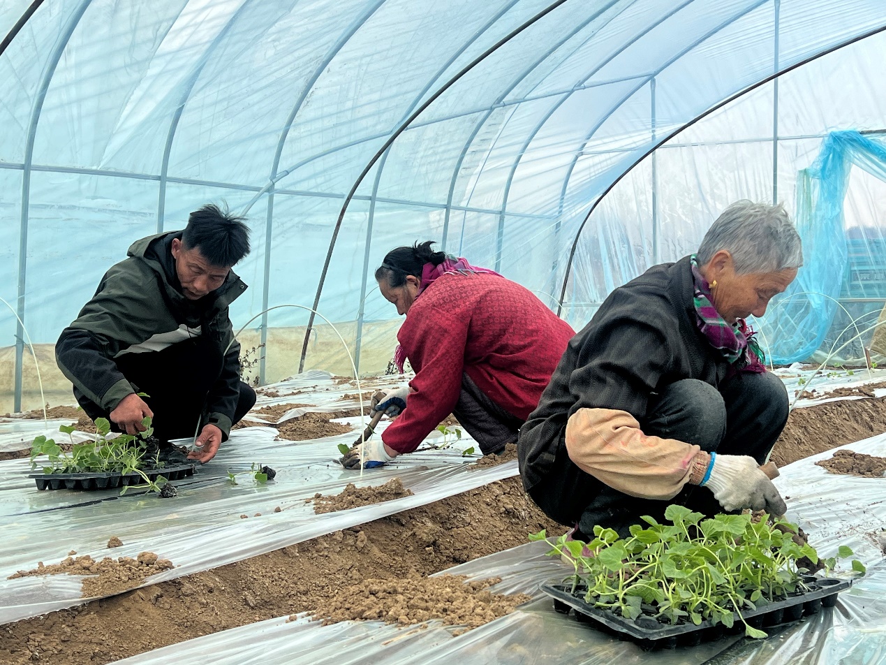 尽管天冷,果蔬大棚里却暖意融融。刚被移栽进大棚的甜瓜、辣椒、茄子、西红柿等秧苗绿油油一片,正铆足了劲儿往上长。