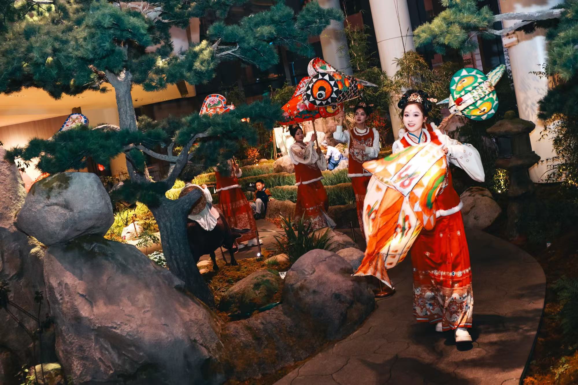 人群看着、笑着,纷纷伸出手。在现代商业体里,一尾来自乡野田间的非遗鱼灯,不仅照亮了孩子惊喜的眼眸,也勾起了都市人关于“年”的记忆。它“游”进新街口,不仅是一场表演,也是一次传统文化与当代消费场景的相遇——非遗借商圈“活”了起来,商圈因非遗多了几分文化味。