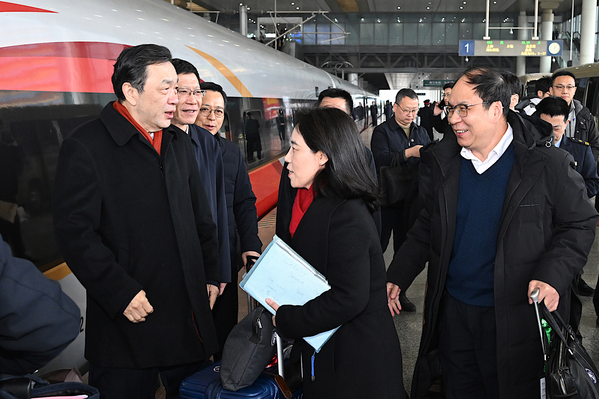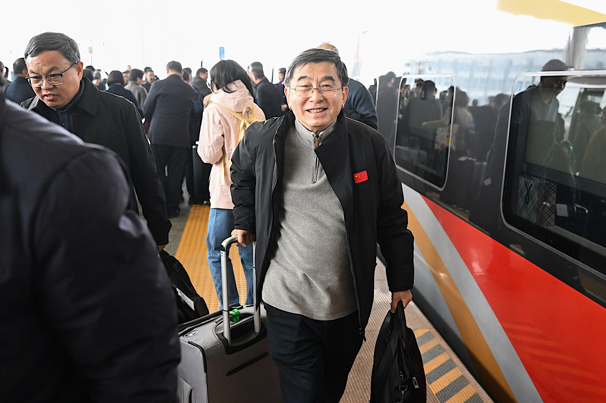 交汇点讯 3月3日下午,出席全国政协十四届四次会议的住苏全国政协委员乘坐高铁抵达北京。