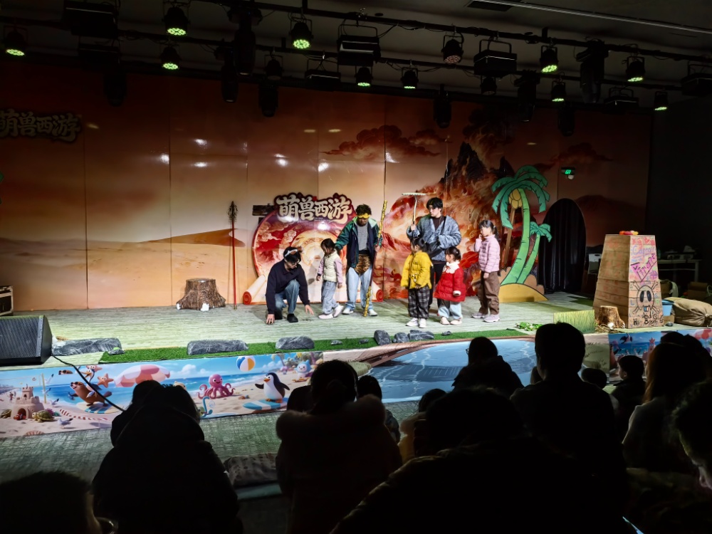在南京玄武招商花园城内的喜舟行动物剧场,双休日每场演出几乎都座无虚席。《萌兽西游》演出现场,演员们身着动物服饰,与孩子们互动。一位5岁小女孩在演员的引导下,将手中的贴纸分享给另一位小朋友,两个孩子瞬间成为好朋友。妈妈陈燕绮开心地说:“孩子不仅能沉浸式互动,还能学到分享的道理,这样的亲子消费花得值!”