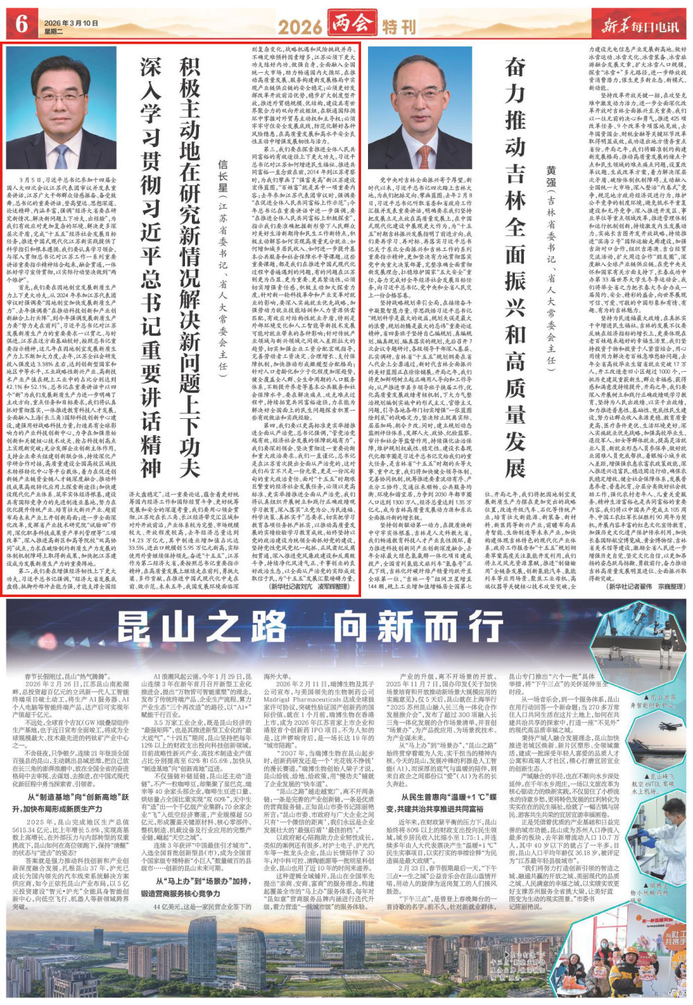 3月5日,习近平总书记参加十四届全国人大四次会议江苏代表团审议并发表重要讲话,江苏广大干部群众倍感振奋、备受鼓舞。总书记的重要讲话,登高望远、思想深邃、论述精辟、内涵丰富,强调“经济大省要在研究新情况、解决新问题上下功夫、出经验”,为我们有效应对更加复杂的环境、解决更多深层次矛盾,完成“十五五”经济社会发展目标任务,推进中国式现代化江苏新实践提供了科学指引和根本遵循。我们要认真学习领会,与深入贯彻总书记对江苏工作一系列重要讲话重要指示精神结合起来,融会贯通,一体抓好学习宣传贯彻,以实际行动坚决做到“两个维护”。