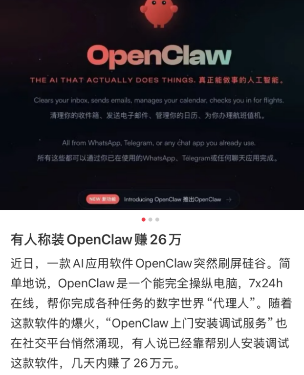 要说最近科技圈最火的“宠物”,那必须得是“龙虾”——名叫OpenClaw的开源AI智能体。有人愿意花200元找人“领”它回家,有人为它熬夜研究要怎么“养”,也就是下载、安装、再调教它学会各种“技能”。