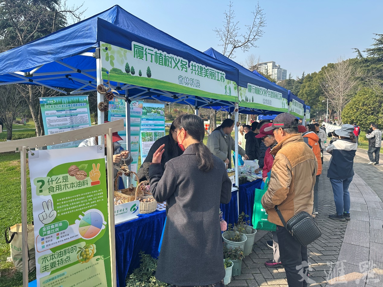树木不仅能美化城市,还能为乡村振兴提供澎湃动力。“我们培育的薄壳山核桃成为村民增收致富的‘金果果’。”江苏省林科院摆出的试吃小摊,吸引市民围观。去年,“江苏宜兴薄壳山核桃科技小院”入选最新一批国家级科技小院名单,该名单由中国农村专业技术协会发布。该科技小院就是由江苏省林业科学研究院、南京林业大学、江苏万阳生物科技牵手共建,首创以“上乔下灌”方式种植薄壳山核桃树和油用牡丹,形成集种植、加工、观光于一体的融合型业态和独特的“双油模式”,具有较高的科技含量和综合经济效益。