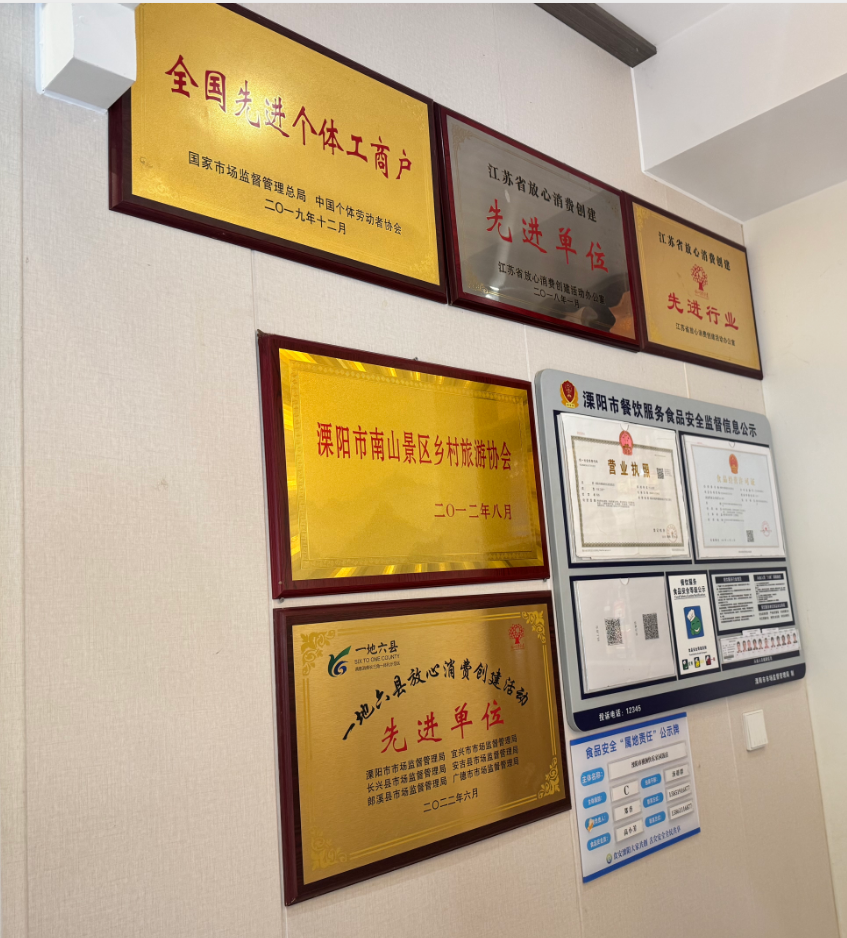 杨女士入住的“快乐家园”就是当地一家“放心消费”单位,负责人潘建华是村里最早经营农家乐的返乡创业者。“刚开始干的时候,什么都不太懂,只知道把菜品卖出去,后面在服务和菜品上都遇到了一些问题,幸好市场监管部门的工作人员来给我们把脉问诊,帮我们优化细节。”潘建华告诉记者,在溧阳市市场监管局的指导下,店里所有菜品明码标价,并不断提升食品安全管理水平,目前食品安全等级已达到优秀级别。