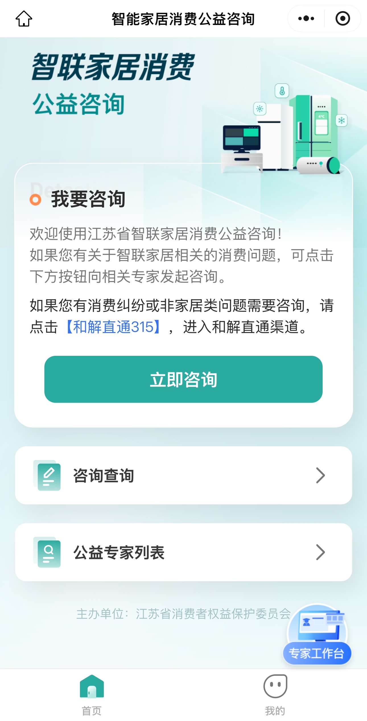 为应对智能家居消费领域的一系列维权难题,江苏省消保委携手各地市消保部门,面向全省选聘44名专家,通过智联家居消费公益咨询平台为消费者提供公益咨询。