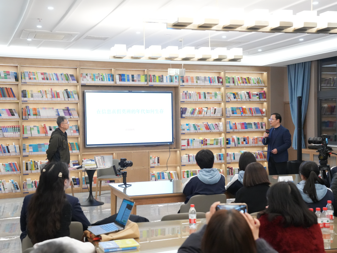 现场,胡教授分享了个人信息处理的三个原则:“先核实后相信”“善用直觉判断”“聚焦重要性而非绝对真假”,为师生提供了可操作的实践指南。