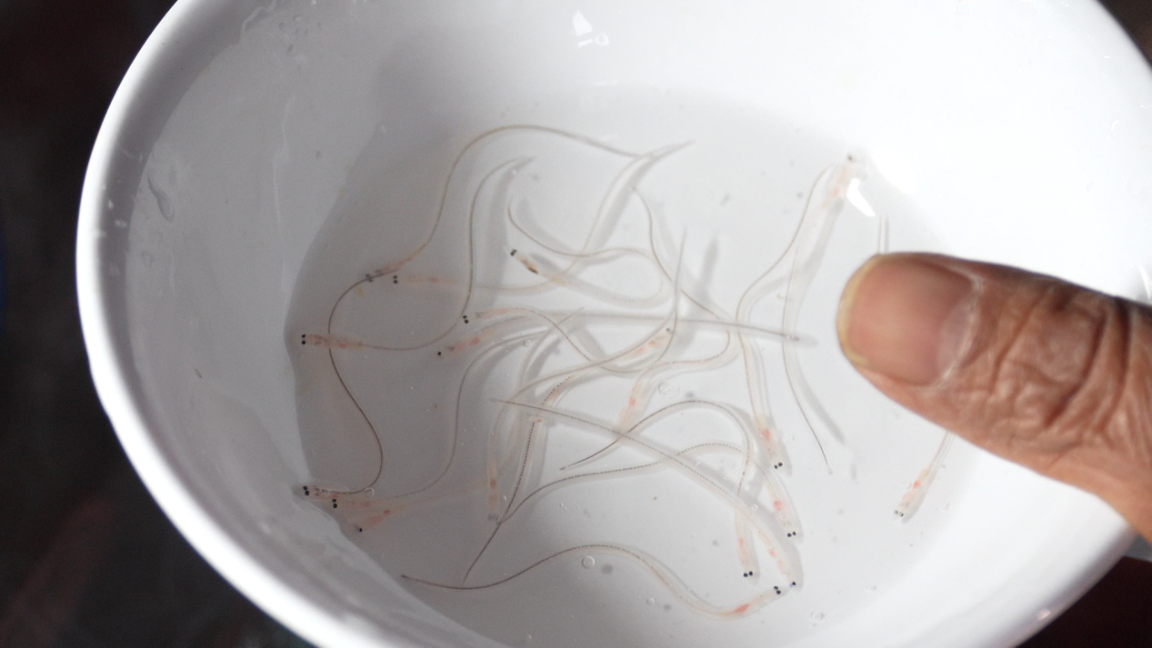 由于出海往返一趟需要四个小时,为节省油费、提高苗种成活率,不少渔民会托返程的渔友将鳗鱼苗顺带捎回,再由家人送往收购点。眼下,距离4月25日禁捕期越来越近,大家都在抓紧最后的窗口期,多捕一网,多攒一份收成。