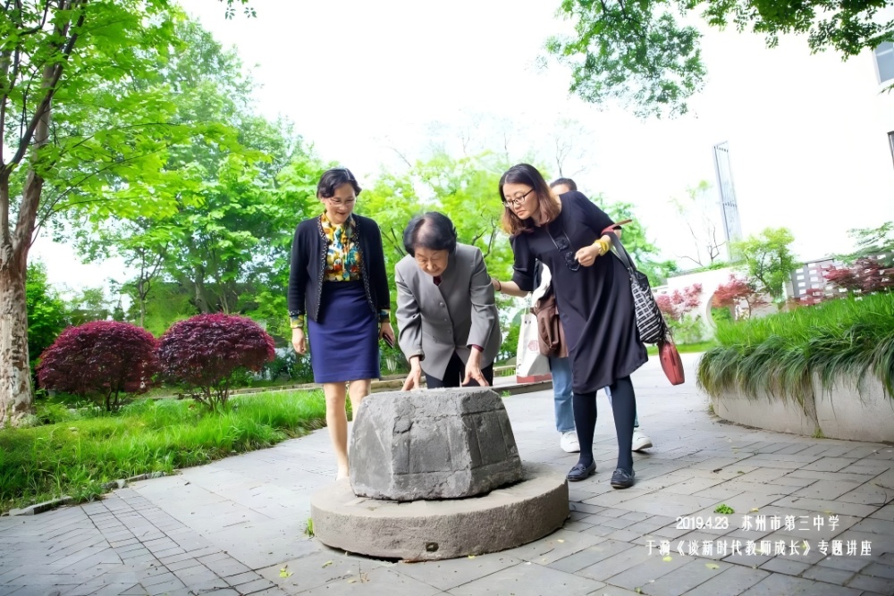 2019年4月,于漪回到母校苏州市第三中学校,走进语文阅读课堂,亲切询问学生的阅读情况。在麦兰园前的那口老井前,她动情地对大家说:“我喝过这口井的水,那时的井水碱比较重,用井水煮出来的粥都是浅绿色的。”