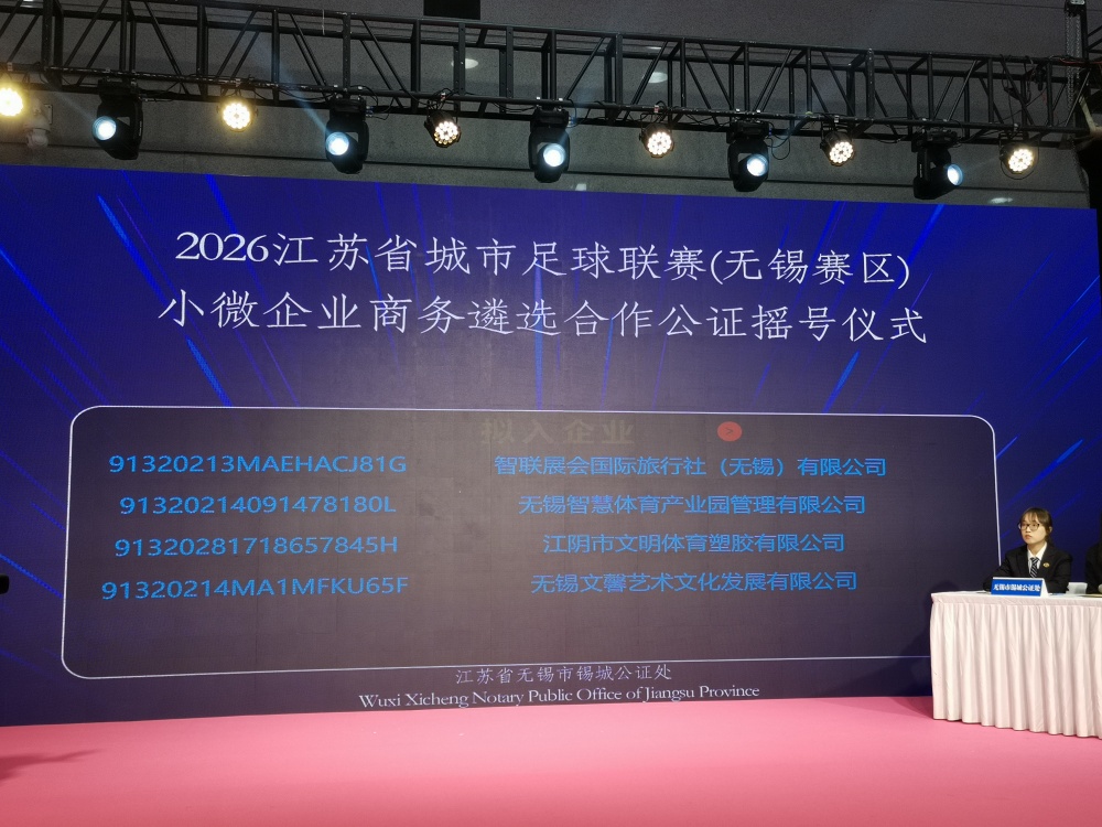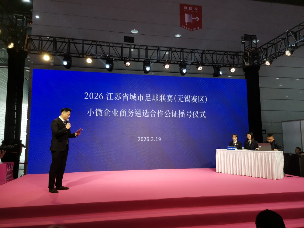 交汇点讯 3月19日,2026江苏城市足球联赛无锡赛区小微企业商务遴选摇号结果出炉。在锡城公证处的全程监督下,从700多家报名企业中摇出46家拟中选企业、39家备选企业,最终名单将在复核通过后正式公布。