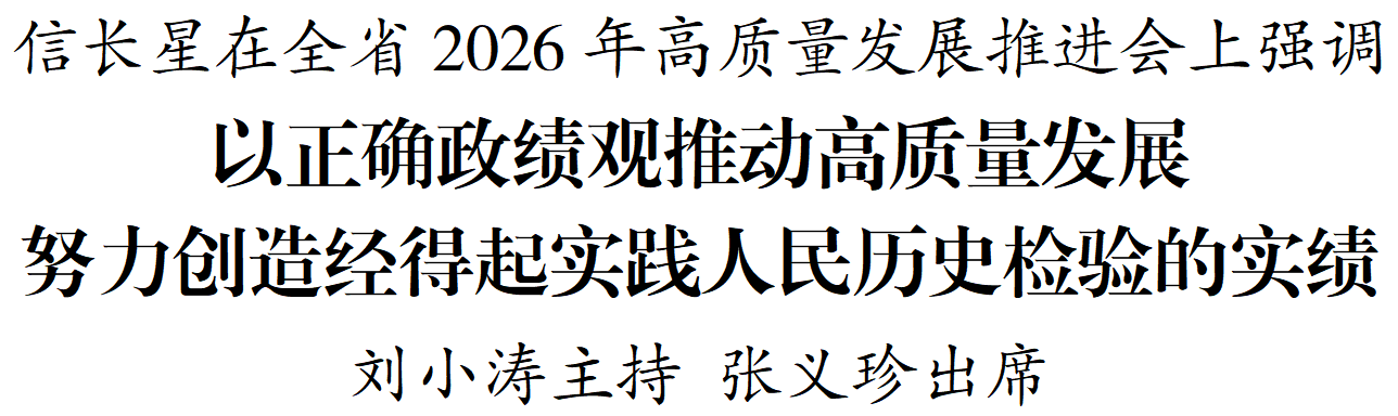 信长星强调,开展树立和践行正确政绩观学习教育,是今年党的建设的重要任务。要深学细悟习近平总书记重要讲话精神,认真落实“立党为公、为民造福、科学决策、真抓实干”总要求,扎实推进学习研讨、问题查摆、整改整治、建章立制、开门教育,把学习教育和中心工作统筹好、推进好,确保“十五五”开好局、起好步。要更好发挥考核指挥棒、风向标作用,完善考核体系,增强考核穿透力,深化考核结果运用,真正考出干事创业的精气神、考出高质量发展的信心动力。