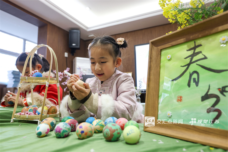 3月19日,南京市雨花台区普德村幼儿园开展“立蛋迎春分”活动,小朋友绘制彩蛋,了解春分节气民俗。新华日报·交汇点记者 陈俨 摄
