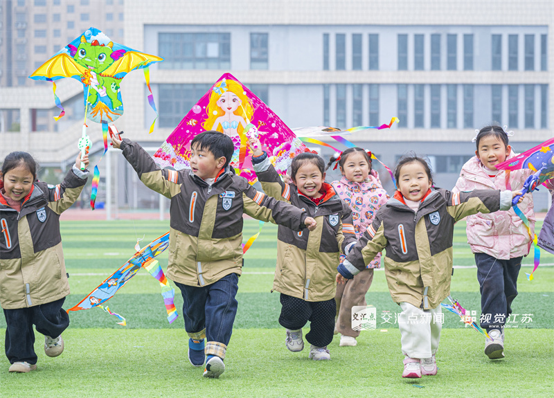 3月18日,宿迁市宿城区南师附中宿迁分校幼儿园组织小朋友放飞风筝、学习春分节气民俗知识。徐江海 摄 视觉江苏网供图
