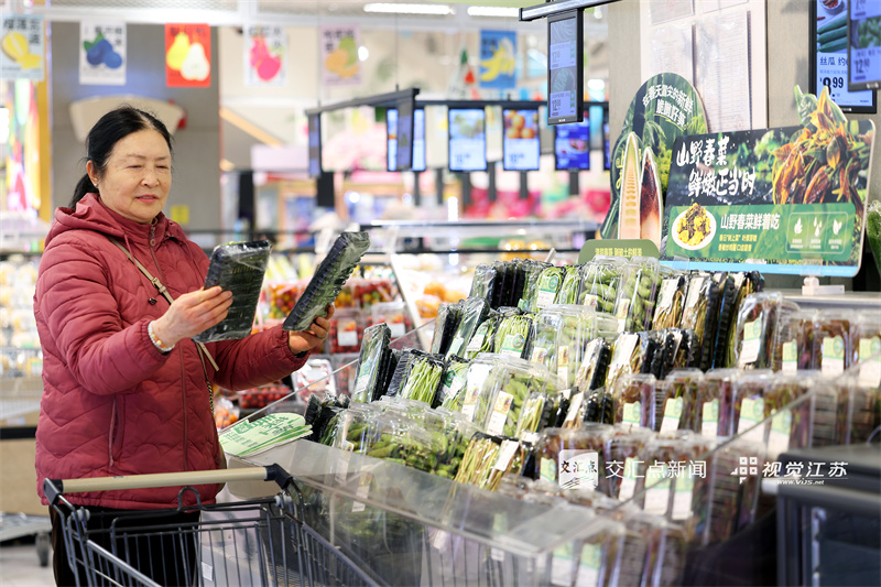 3月5日,南京一家超市春菜专柜香椿头、芦笋头、芦蒿等时令春菜琳琅满目,吸引市民前来选购。新华日报·交汇点记者 赵亚玲 摄