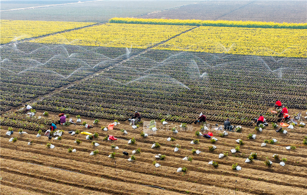 (特约摄影 徐建东 10:51 摄 16:14上线)3月20日,沭阳县陇集镇陇美花木基地,工人正在用盆栽容器培植红叶石楠幼苗,不负春光致富忙。