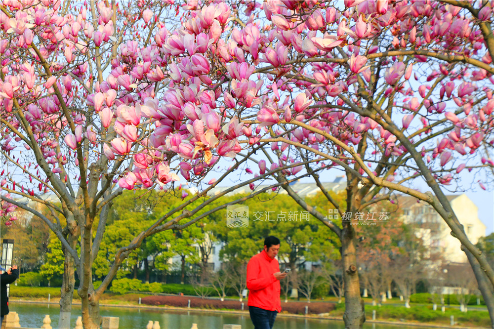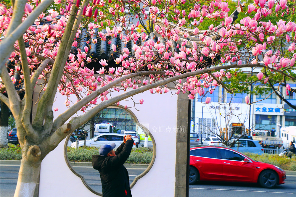 (特约摄影 陈弋 7:41摄 10:06上线)3月20日春分节气,苏州市姑苏区南门路街头上的二乔玉兰绽放,给市民惊喜,纷纷驻足打卡留下绚烂春色。