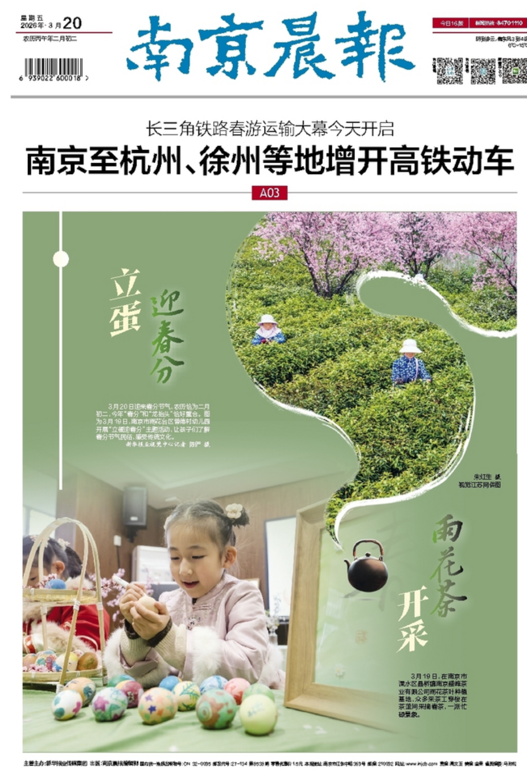 (特约摄影 王昊 9:30摄 14:34上线)3月20日,春分节气,淮安市实验小学开展春分主题活动。校园里摆放着春分知识版画与节气展板,图文并茂地介绍春分物候、节气常识与传统习俗,让大家在驻足观看中增长知识。