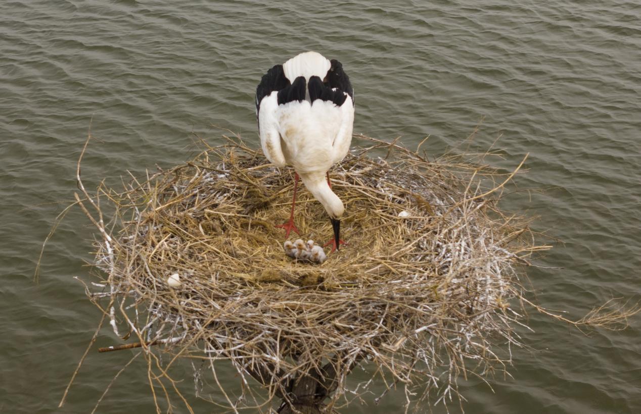 仅隔三日,3月15日,保护区野外监测点的工作人员通过智能监控镜头,又捕捉到温暖一幕:一对东方白鹳夫妇成功孵化出4只幼崽。毛茸茸的小家伙在巢中蹒跚蠕动憨态可掬。被誉为“鸟中大熊猫”的东方白鹳是国家一级保护动物,对栖息环境要求极为苛刻,其野外繁殖情况直接反映区域生态质量。