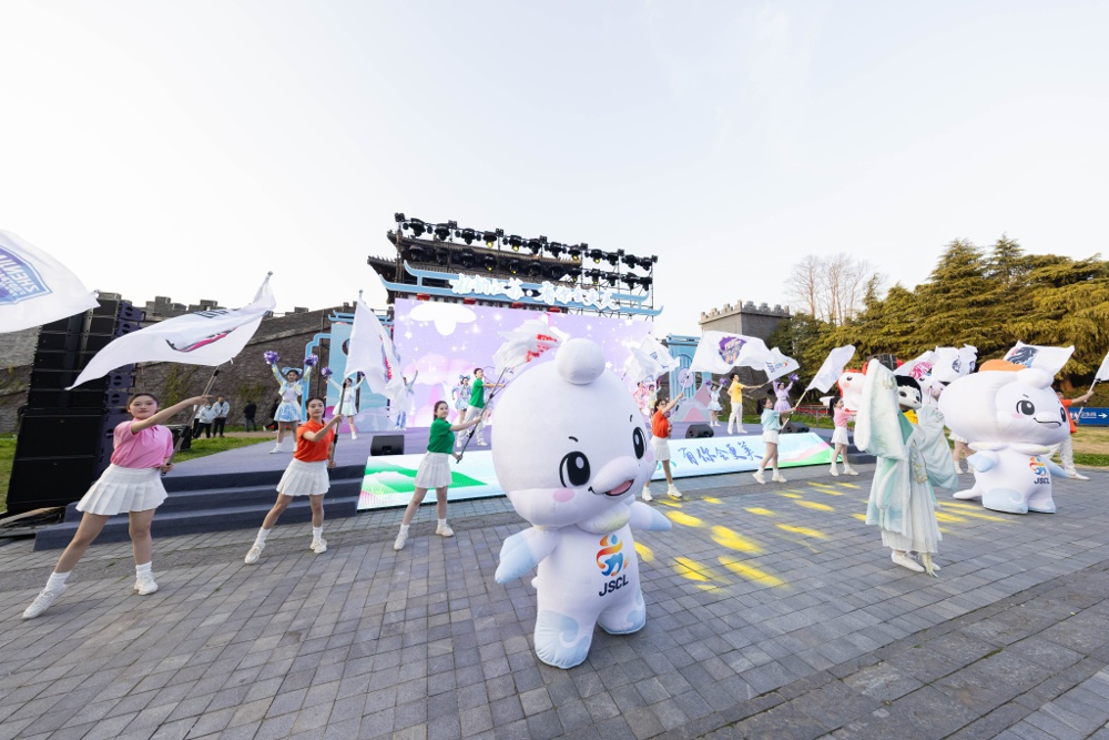 活动现场,还举办了文旅消费特色市集与直播活动,非遗文创、研学产品、春季线路等“文旅+”融合产品琳琅满目。刚刚发布的“苏超”吉祥物“苏嘟嘟”、扬州太保“鹅嘟嘟”也来到现场,与水韵江苏吉祥物“苏苏”,携手献上热力表演,萌动全场。