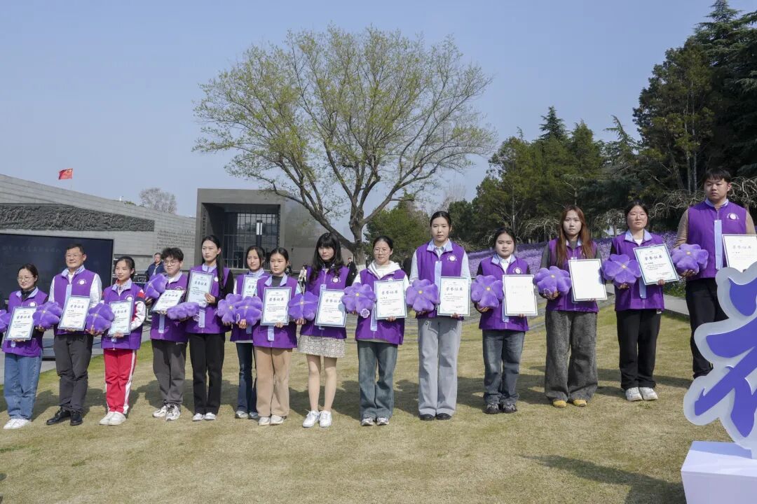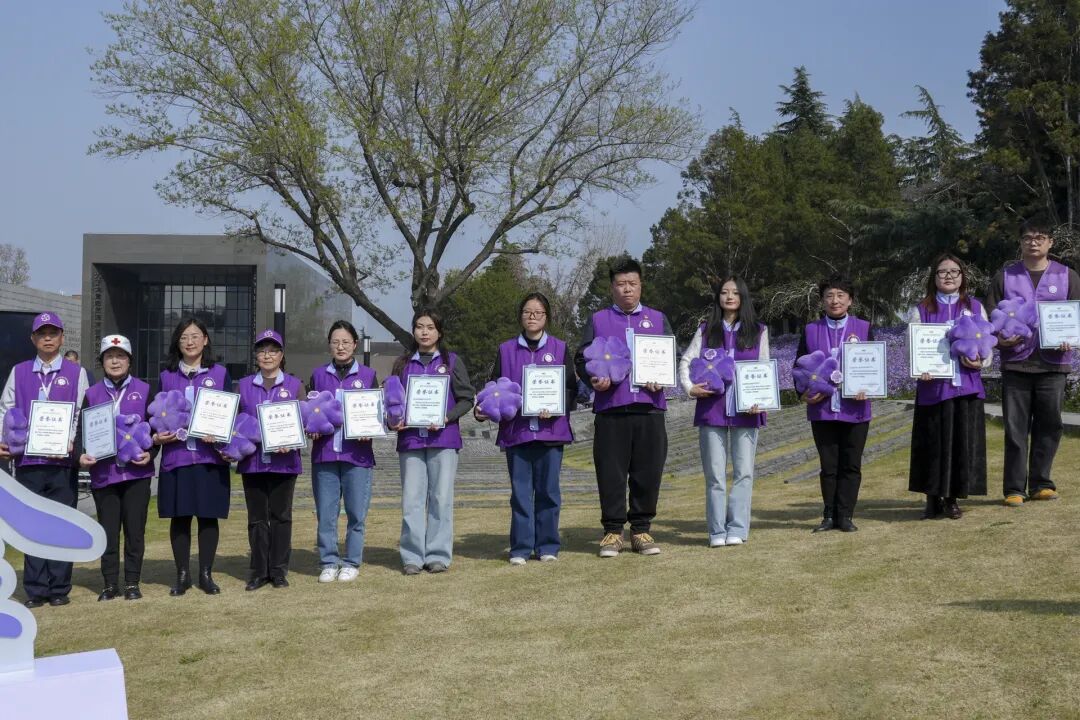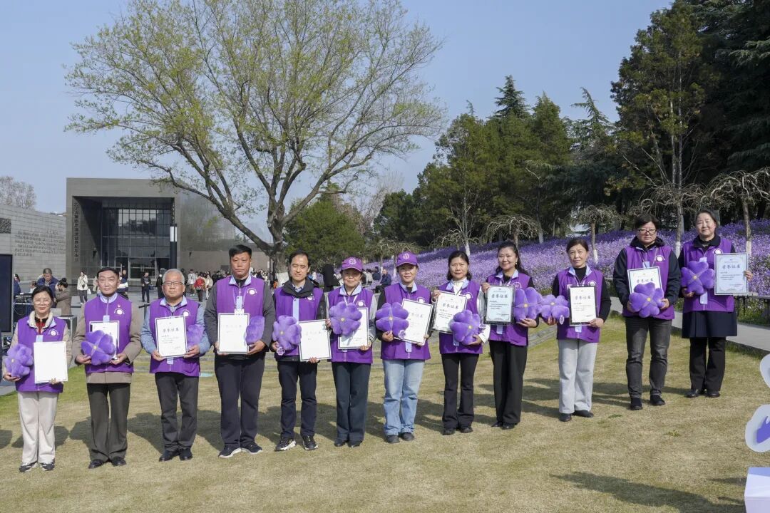 志愿服务从不是一时的热情,而是长久的坚守与传承。活动现场,纪念馆为12名坚守岗位的资深志愿者颁发“紫金草和平耕耘奖”,表彰他们多年来的默默奉献。