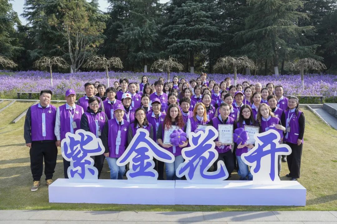 阳光下,紫金草花海随风摇曳,紫色的花浪承载着和平的期许。中外志愿者并肩合影,笑脸被定格在镜头中,一张张照片拼成一株繁茂的紫金草图案。愿紫金草常开不败,愿志愿精神汇聚成光,把南京的和平故事传向世界。