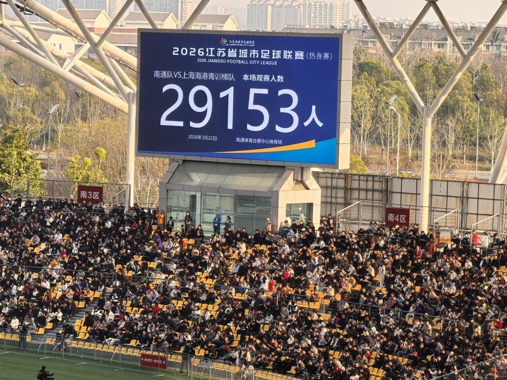 “南通队!加油!”“战斗!南通队!”本次比赛吸引了29153名球迷到场,助威声浪与雷鸣般的擂鼓声交织,将“南鸟巢”再次汇成一片欢乐海洋。