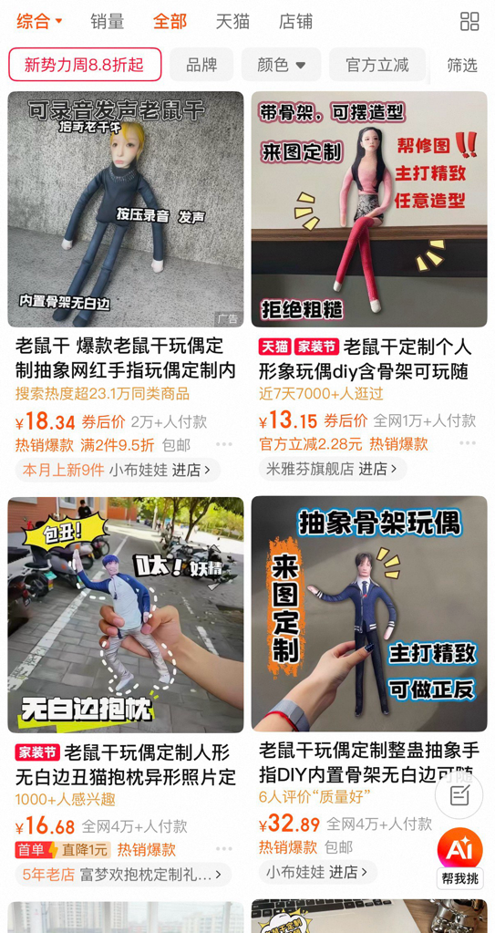 造型干瘪、充棉稀疏、形象怪异……近期,一款在不少人眼里毫无美感可言,甚至有点抽象的“老鼠干”玩偶,悄然席卷了中小学校园,成为学生们的“心头好”。几元到十几元的亲民定价、支持个性化定制的属性,让这个看似“丑到极致”的小物件,迅速引发了全网热议。有人困惑不解,直言自身审美受到了严重冲击;也有网友表示理解,认为每个时代都有专属的流行喜好,更是一种青春趣味的体现。