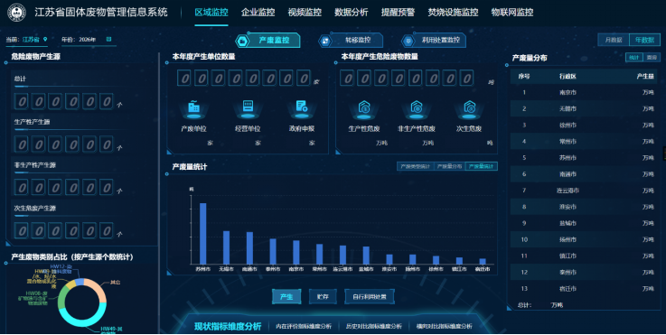 数智协同,智慧监管全国领先。打造固体废物“一张网”管理模式,危险废物实现“五即”规范化建设和二维码“一码贯通”全过程信息化环境监管,一般工业固体废物分批次实行电子转运联单,累计运行联单150万余次、转移7800万余吨;AI监控、卫星遥感等技术赋能非现场监管,监管效能全面提升。