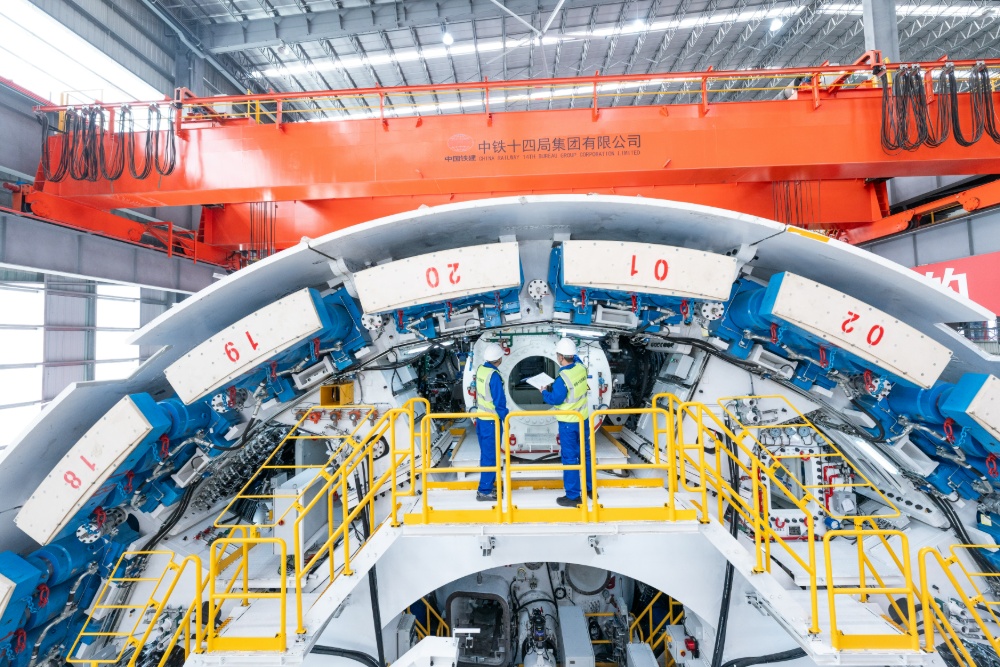 针对长江隧道盾构掘进特点,铁建重工与中铁十四局联合量身打造了“奋楫号”盾构机。该盾构机整机全长145米,总重约3800吨,刀盘开挖直径14.33米,集成了开挖仓可视化系统、主驱动状态检测系统、齿轮油在线检测系统、刀盘刀具检测系统、同步注浆壁后检测系统、超前地质预报系统等智能化装置,可实现隧道智能建造与设备状态实时可知,科技集成度高。同时,研发团队针对智能掘进课题开展专项设计,盾构机具备掘进远程驾驶、关键部件实时监测、管片箱涵智能拼装等功能,实现隧道主体和内部结构一次成型。