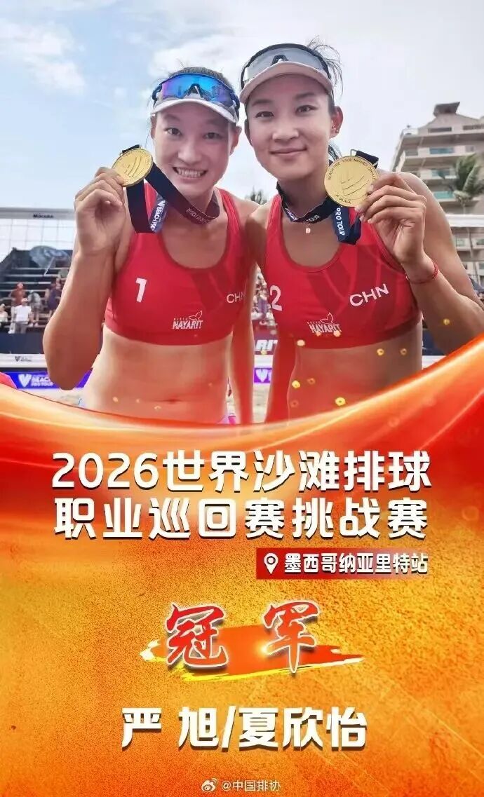 交汇点讯 3月30日凌晨,国际排联世界沙滩排球职业巡回赛挑战赛(墨西哥纳亚里特站)圆满落幕。中国选手严旭与夏欣怡并肩作战,一路力克强敌,勇夺女子组冠军。记者获悉,严旭是南通中学优秀校友,目前是中国沙排队备战 2028 年洛杉矶奥运会的核心队员。