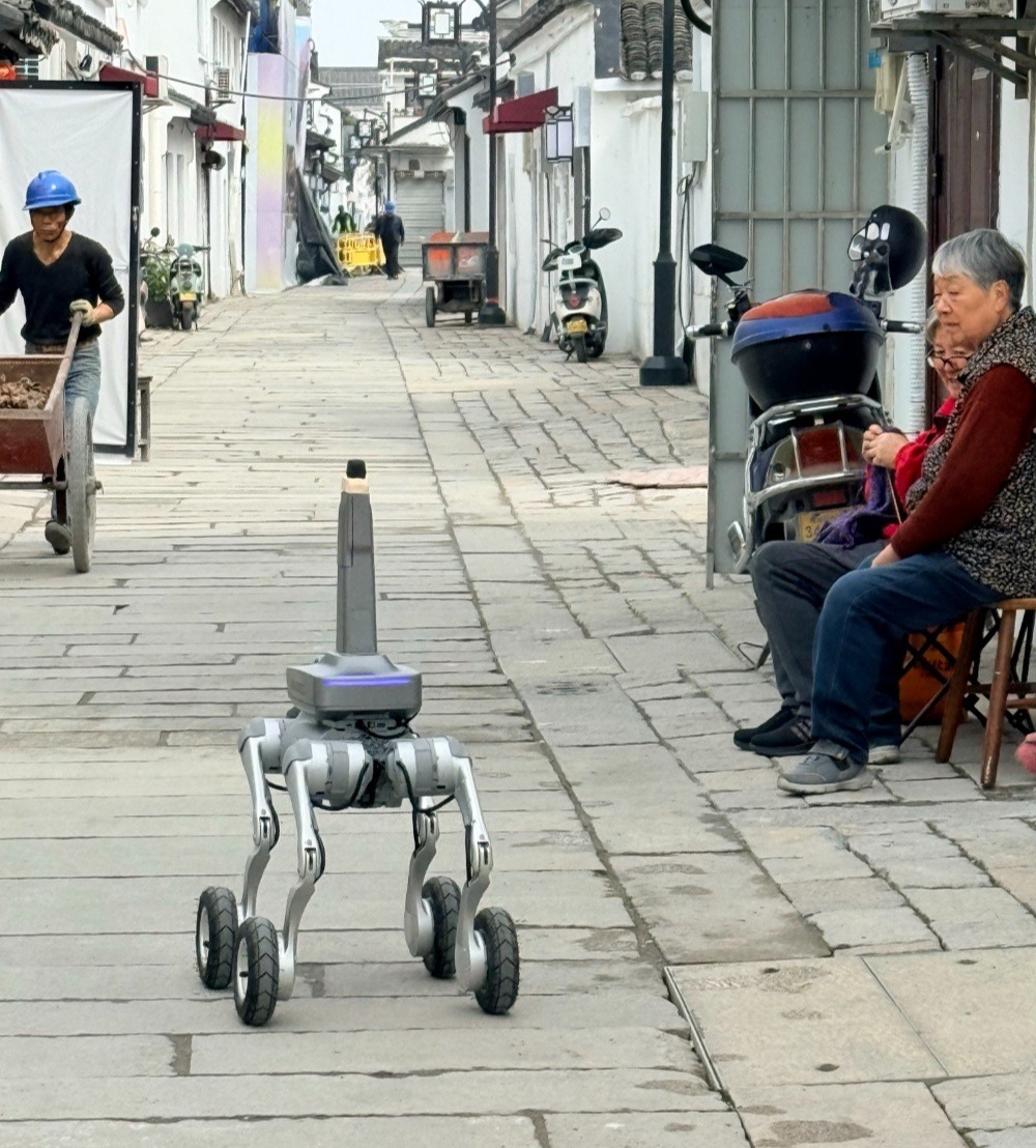 3月31日,苏州32号街坊剪金桥巷,一只机器狗穿梭在古街窄巷。它时而驻足端详路面,时而钻入隐蔽街角,360°全景相机实时捕捉各类细微城市问题——它的身份是“城市体检师”。
