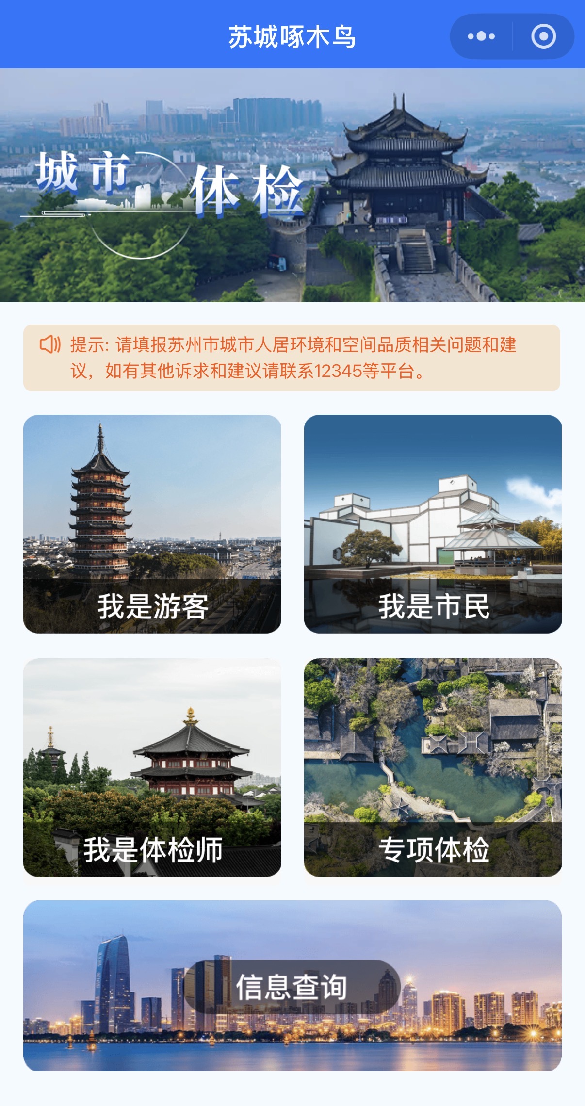 打开手机小程序“苏城啄木鸟”,市民随手一拍,就能成为这座城市的“体检师”。聂俊奇介绍,目前全市累计参与体检人数已达1.5万人次,市民通过各类渠道报送城市体检问题超3万件。这些小问题,有的当时就能解决,有的被纳入更系统的更新计划。