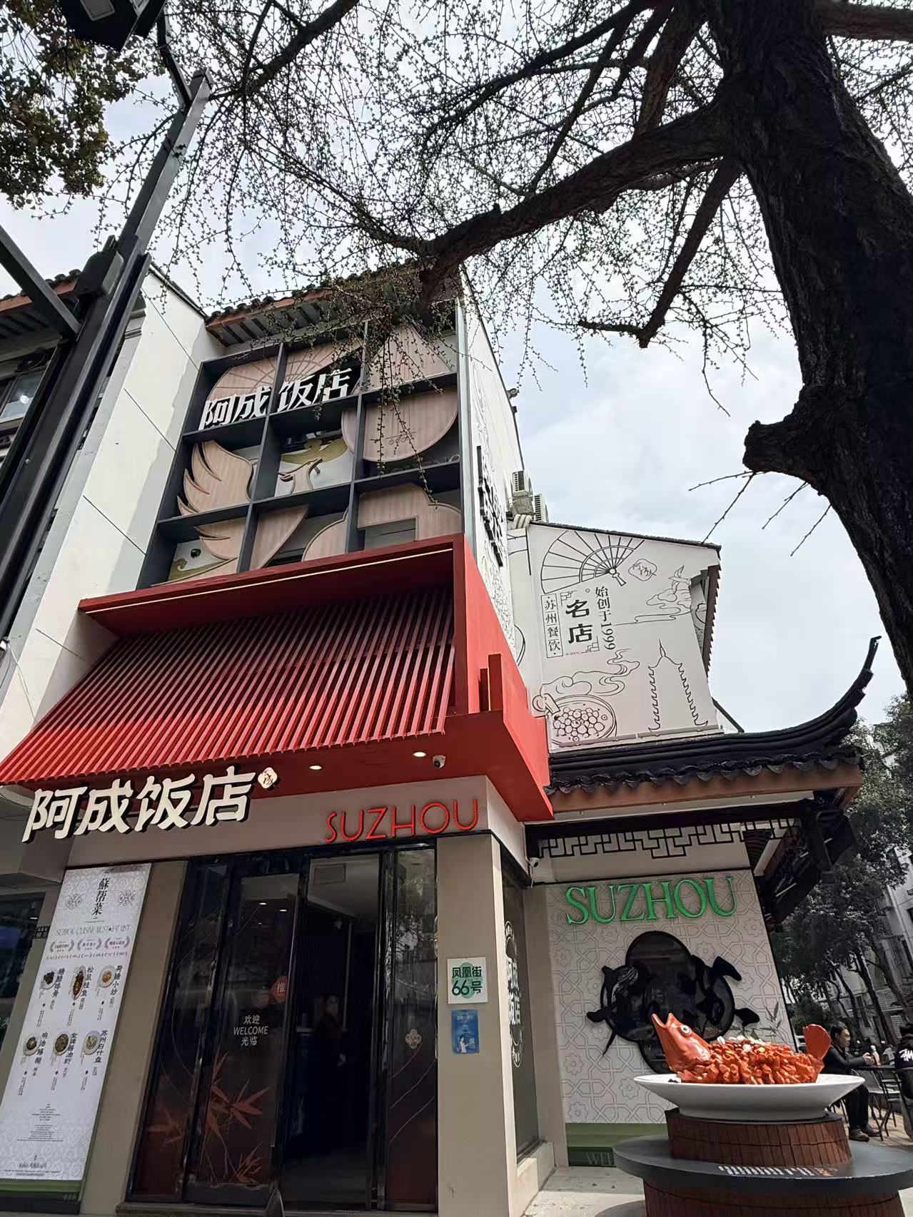 改造完成后,饭店人气比以前更旺。沈洁成在门头上添了一只凤凰,配了琵琶、铜钱等苏州元素,“生在凤凰街,要有个凤凰。”这些都是他的创意,改造团队认真聆听、悉数采纳,最终还给他一个别具风格的古韵今风小店。
