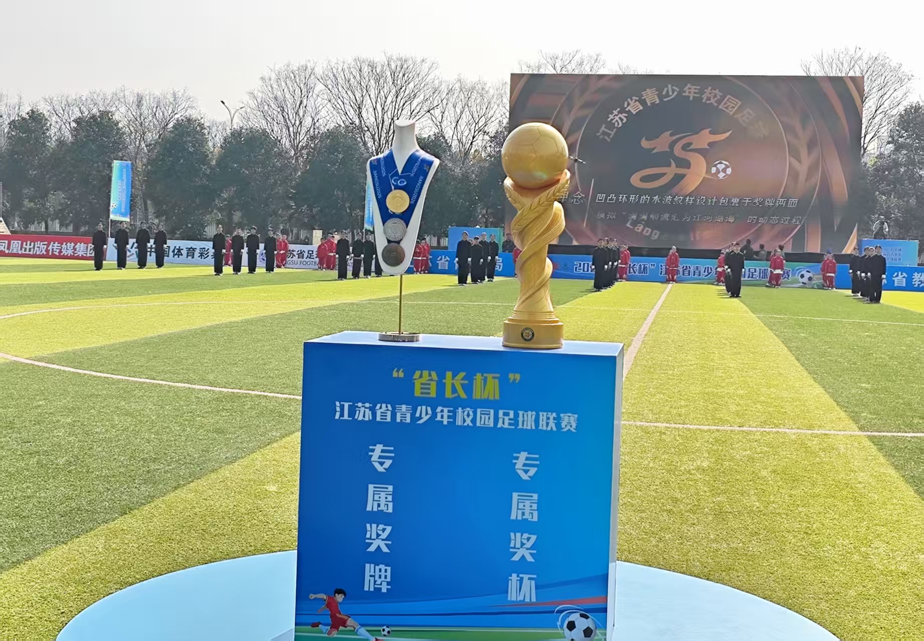当天,全新设计的“省长杯”青少年校园足球联赛奖杯、奖牌惊艳亮相。