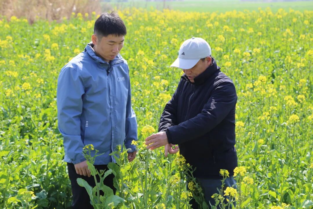 在杨道前的农田里,春耕已全面铺开:小麦拔节,油菜含苞。他指着眼前一片油菜田介绍:“今年气温偏高,我们通过控旺技术防止它过早开花,现在油菜已经抽薹并初现花蕾,等进入盛花期,就要进行菌核病和蚜虫的防控。”