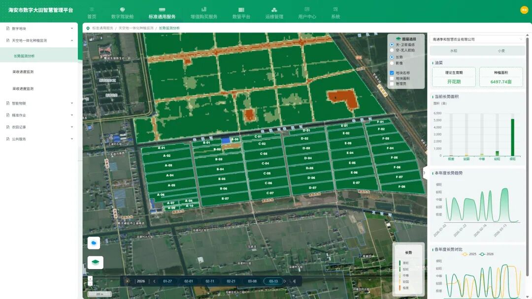 而在他的手机里,另一幅“图景”正在实时更新——“土地帮帮”小程序上,每一块田块的作物长势、土壤墒情、气象预警乃至未来的市场价格走势,都以可视化图表清晰呈现。这款由中国航天技术与人工智能深度融合催生的农业决策工具,目前已在南京、盐城、徐州、扬州等多地推广应用,正在让春耕从“经验活”变成“数据活”。