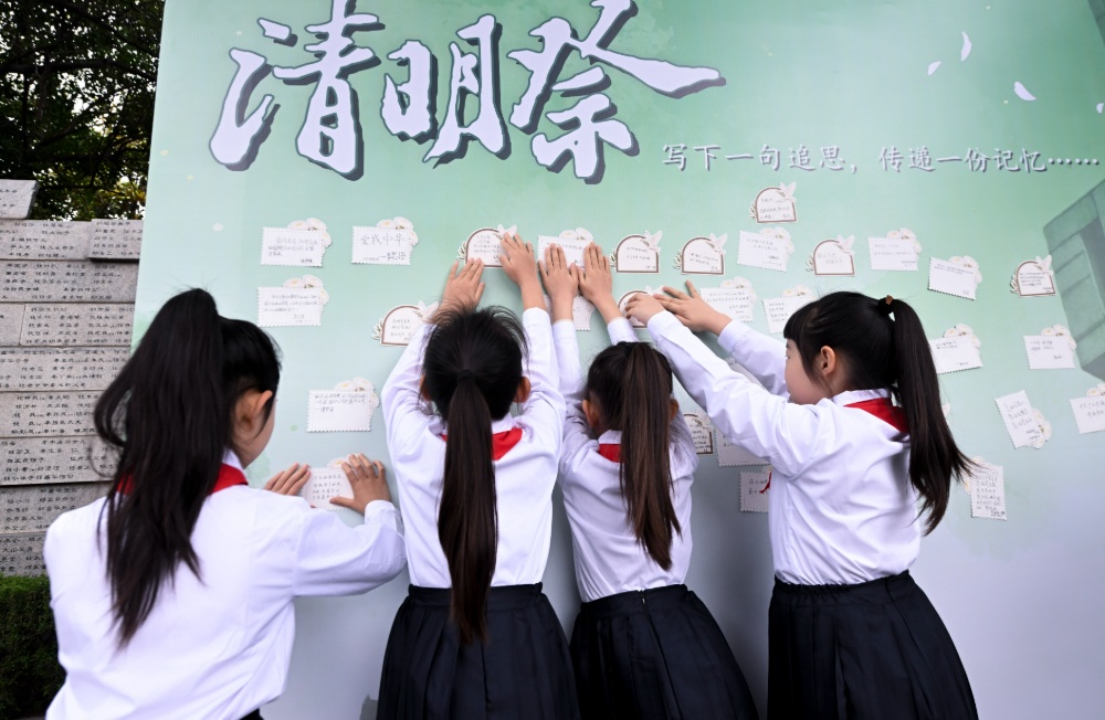 “清明在此抚今追昔”“岁月无声,历史有痕”“奶奶,我很想念您”……幸存者后代、历史记忆传承人及学生代表纷纷写下清明追思寄语,贴在追思墙上。