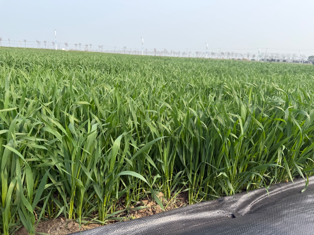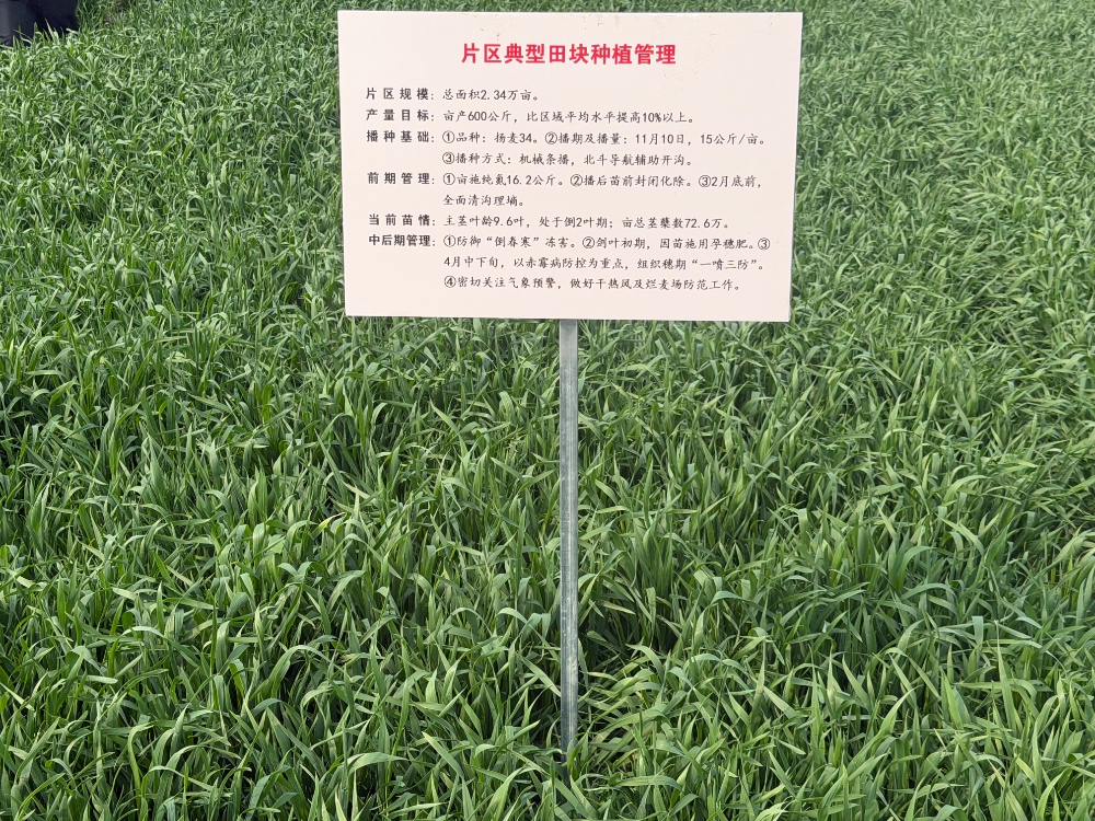 会前观摩环节,记者来到位于洪泽区东陈村的小麦高产优质片区,油绿的扬麦34品种小麦密密匝匝已没过膝盖,一台植保机正在田间均匀喷施尿素。“这茬小麦去年11月10日播下去,现在从叶片和数量来看长得很均匀。专家提醒我们,已经具备亩产600公斤的基础,后期要注意把管理做好。”洪泽区农业农村局副局长赵晓斌介绍,全区在田小麦50.8万亩,已全面完成拔节肥施用,孕穗肥施用面积5%。