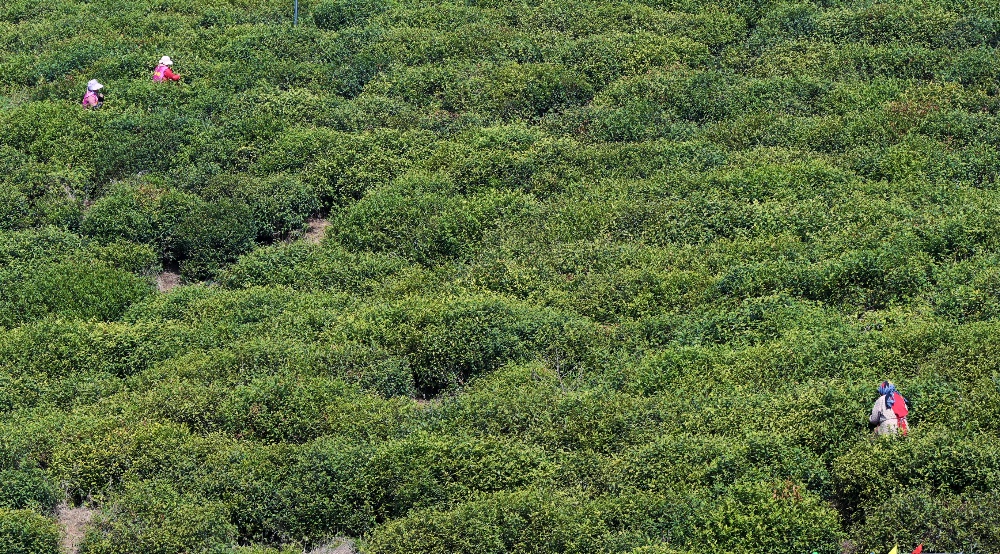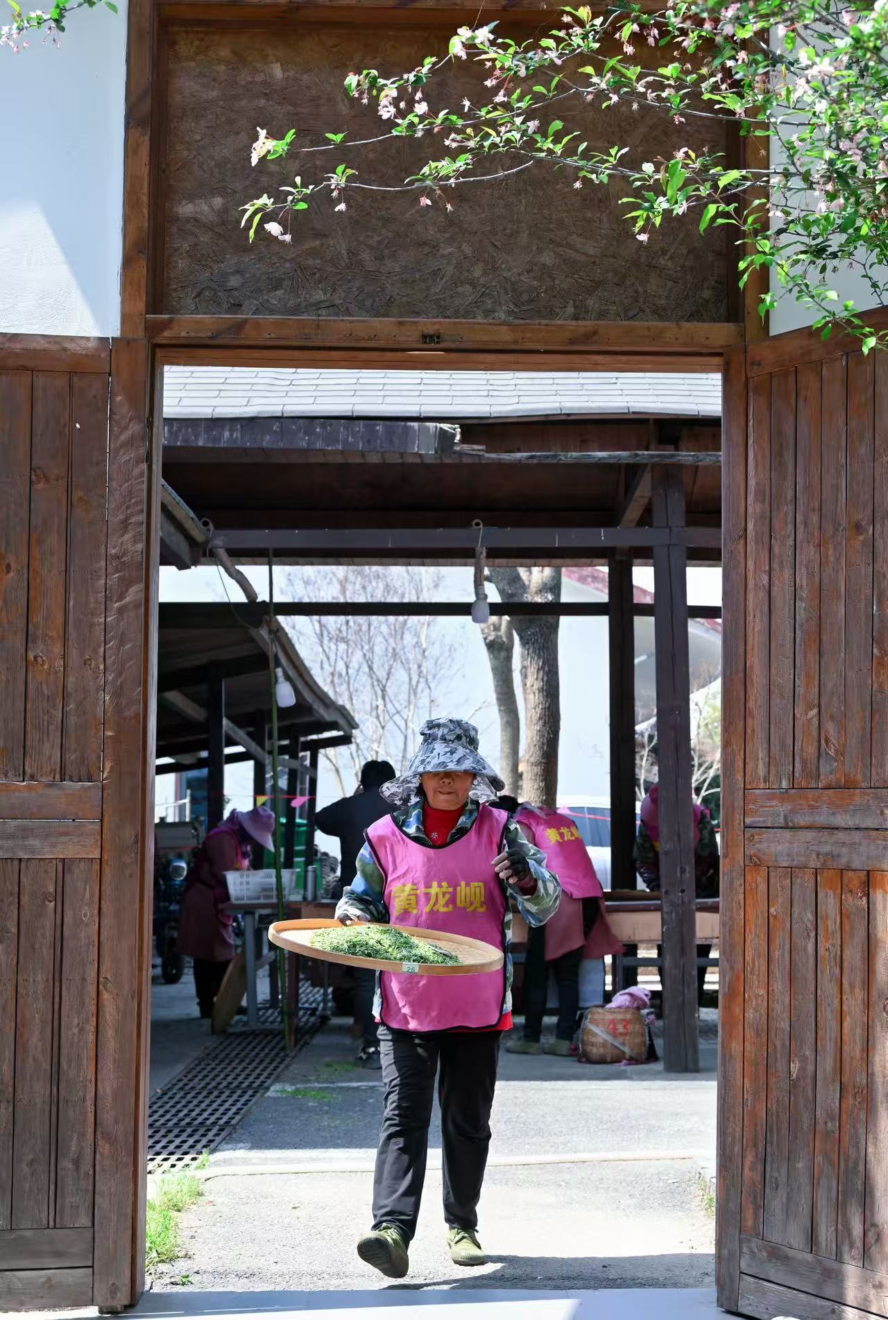 雨润青山绿,风催新芽香。4月4日,清明假期第一天,清晨的南京市江宁区江宁街道牌坊村黄龙岘,茶田里已有工人头戴遮阳帽、腰挎小竹篓,行走在茶垄间,一捏一提,快速采收春茶新叶。日头渐升,村里主干道上,本地茶农摆出大锅当街炒茶,漫步其中,茶香四溢。游客既可现场观看炒茶技艺,也能购买今春新茶,还可寻一处茶亭,细细品茗。