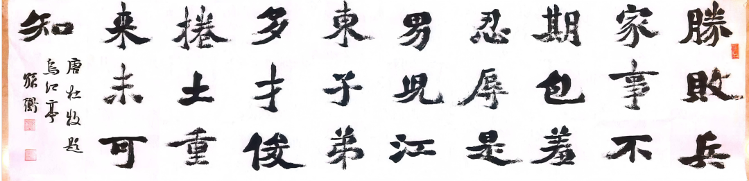“胜败兵家事不期,包羞忍耻是男儿。江东子弟多才俊,卷土重来未可知。”宿迁市书法家协会主席孙冲,精心创作了一幅书法作品。他挥毫写下唐代诗人杜牧创作的七言绝句《题乌江亭》,为即将上场比赛的“苏超”宿迁队队员加油鼓劲。孙冲说:“全力战斗的同时也要放下包袱,赛场上胜败乃兵家常事,能屈能伸方为男儿。”