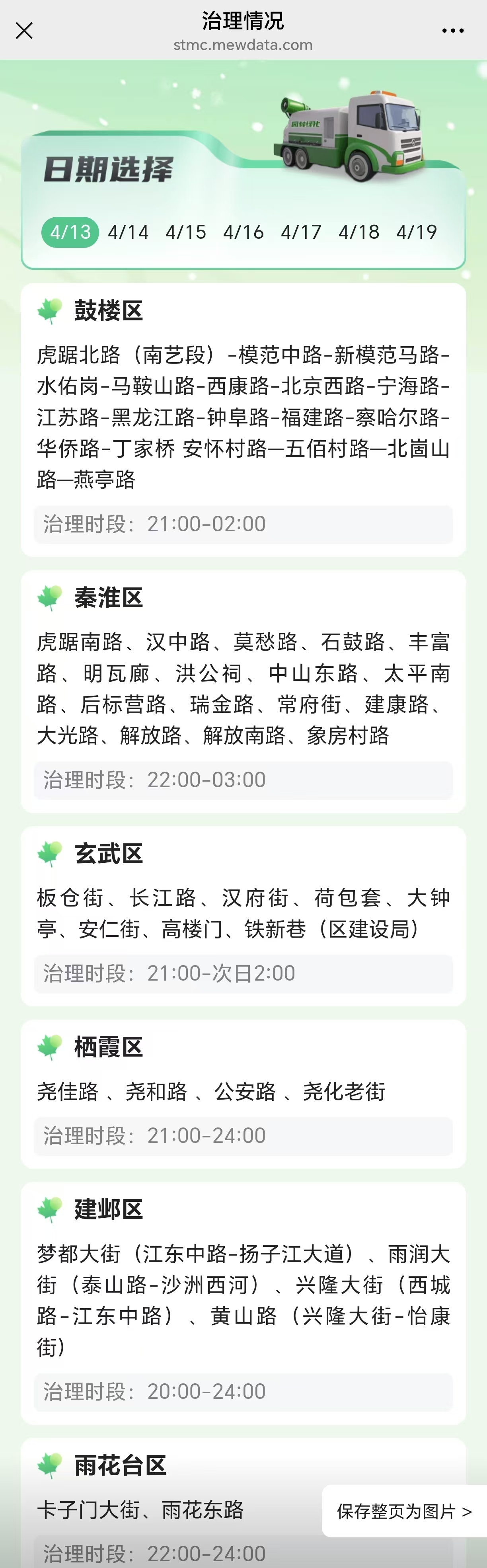 南京市绿化园林局城市绿化管理处副处长薛剑告诉记者,4月初,南京已启动夜间吹絮,根据法桐果球成熟及气温情况,指导主城各区绿化主管部门提前做好吹絮准备。今年,南京将继续对主城区约200条道路共48300余株法桐行道树,采取动态循环方式进行治理。市民游客也可登录法桐飘絮预报服务系统,查询每周治理道路和时段。