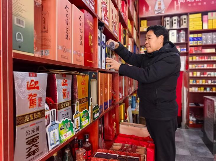 邳州“大不同商店”是一家经营已逾八年的烟酒土特产店。土特产、烟酒饮品等分类码放,每一张价签都清晰醒目。