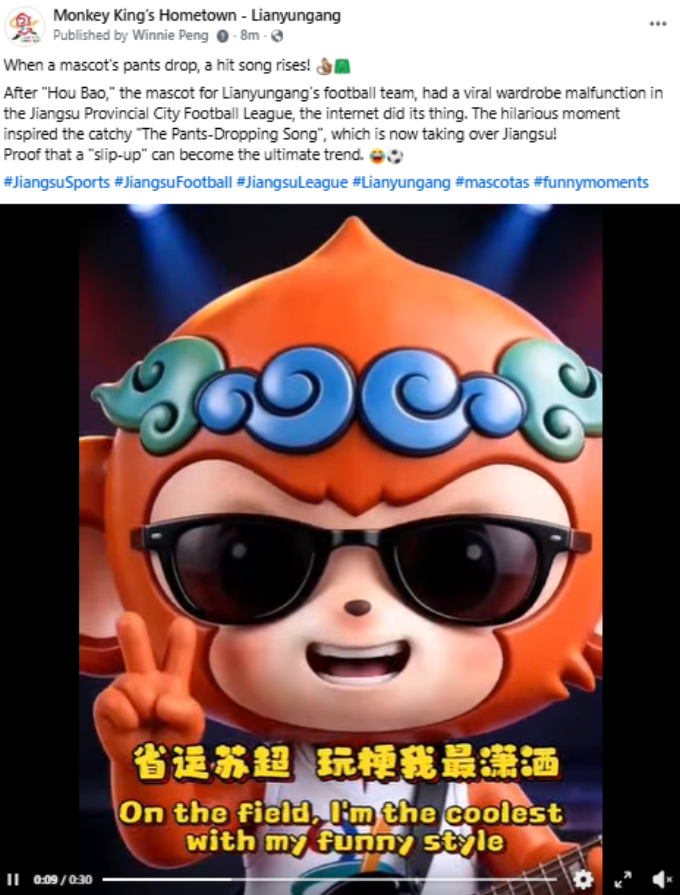 这个猴宝,是省运会的吉祥物,在“苏超”连云港赛区揭幕战演出中,起初裤衩滑落只是场尴尬的舞台事故,可这场“手忙脚乱的提裤表演”,竟硬生生从“事故现场”演变成了网友口中的“行为艺术”——“别人吉祥物靠卖萌圈粉,猴宝靠提裤子封神”,一句戏谑的调侃,精准戳中了互联网的传播密码。