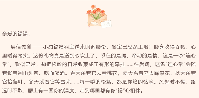 无锡以温柔笔触开篇,把苏超号角当作春日序曲,从太湖之滨向黄海之畔奔赴;连云港则在信中暖心提及,无锡送来的裤腰带是“连心带”,系住牵挂、收束温情,四季相伴皆有“锡”心照料。
