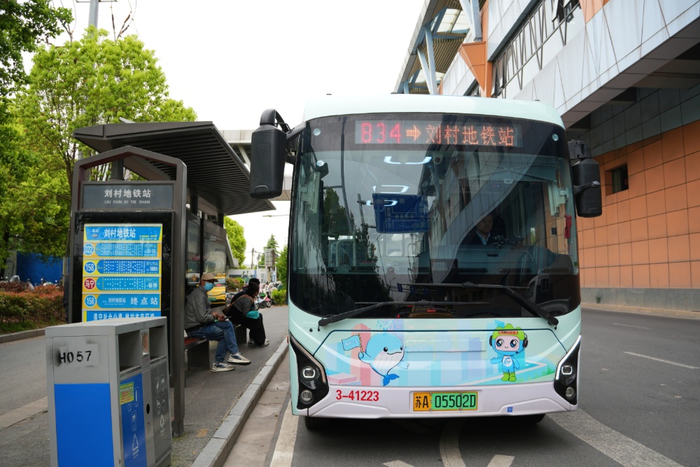 两地公交采用统一的视觉设计。车身以“清新薄荷绿”为主色调,呼应南京山水城林与马鞍山锦绣诗乡。两侧分别印有南京“小蓝鲸”和马鞍山“马交交”吉祥物,传递“宁马一家”的同城温度。南京接驳车身还标注“南京都市圈”字样,方便识别。沿线公交站牌同步升级,与涂装车辆形成视觉呼应,让站点成为同城出行的“指南针”。