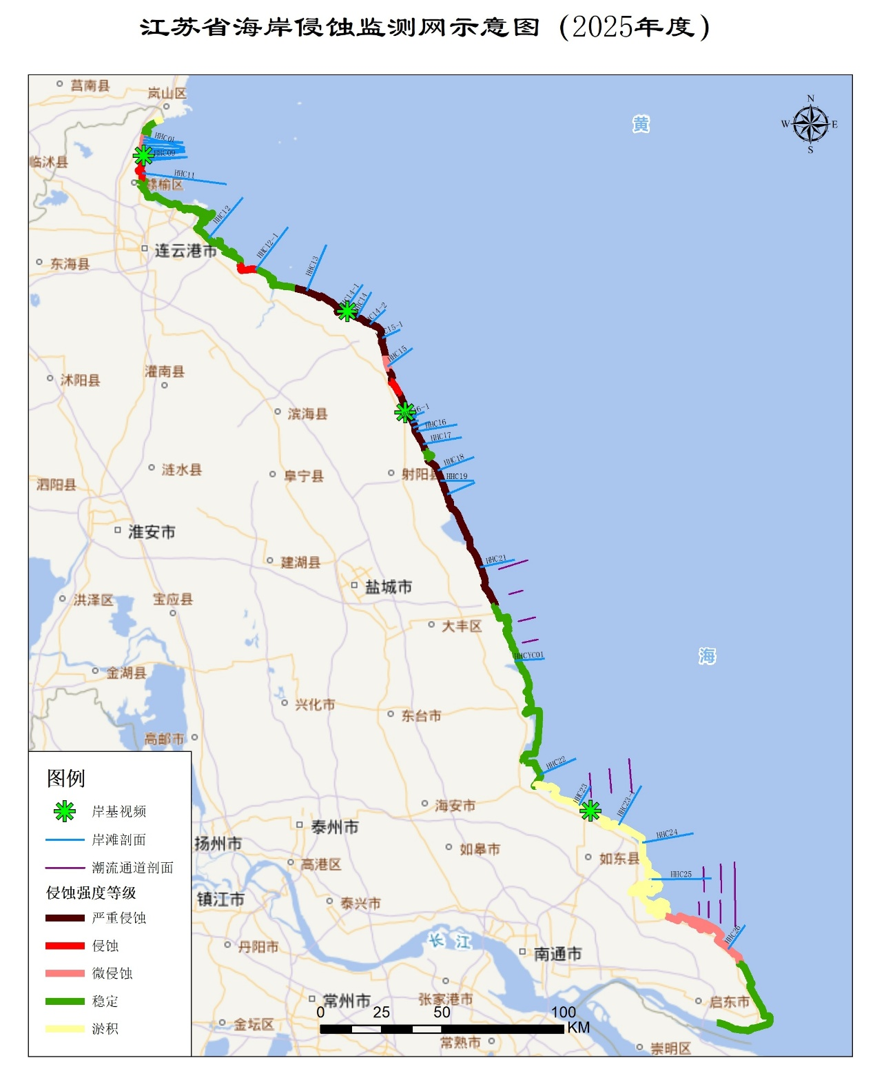 海岸侵蚀空天地海一体化监测与修复技术为海岸线穿上“防护铠甲”。该技术精准量化江苏海岸侵蚀长度285.5千米,成功捕捉到射阳双洋河口岸段7个月内岸线向陆蚀退120米等关键数据,形成“潜堤—护坎—盐沼”协同修复方案。
